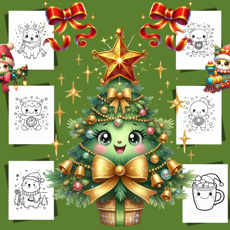 Cute Kawaii Christmas Coloring Book